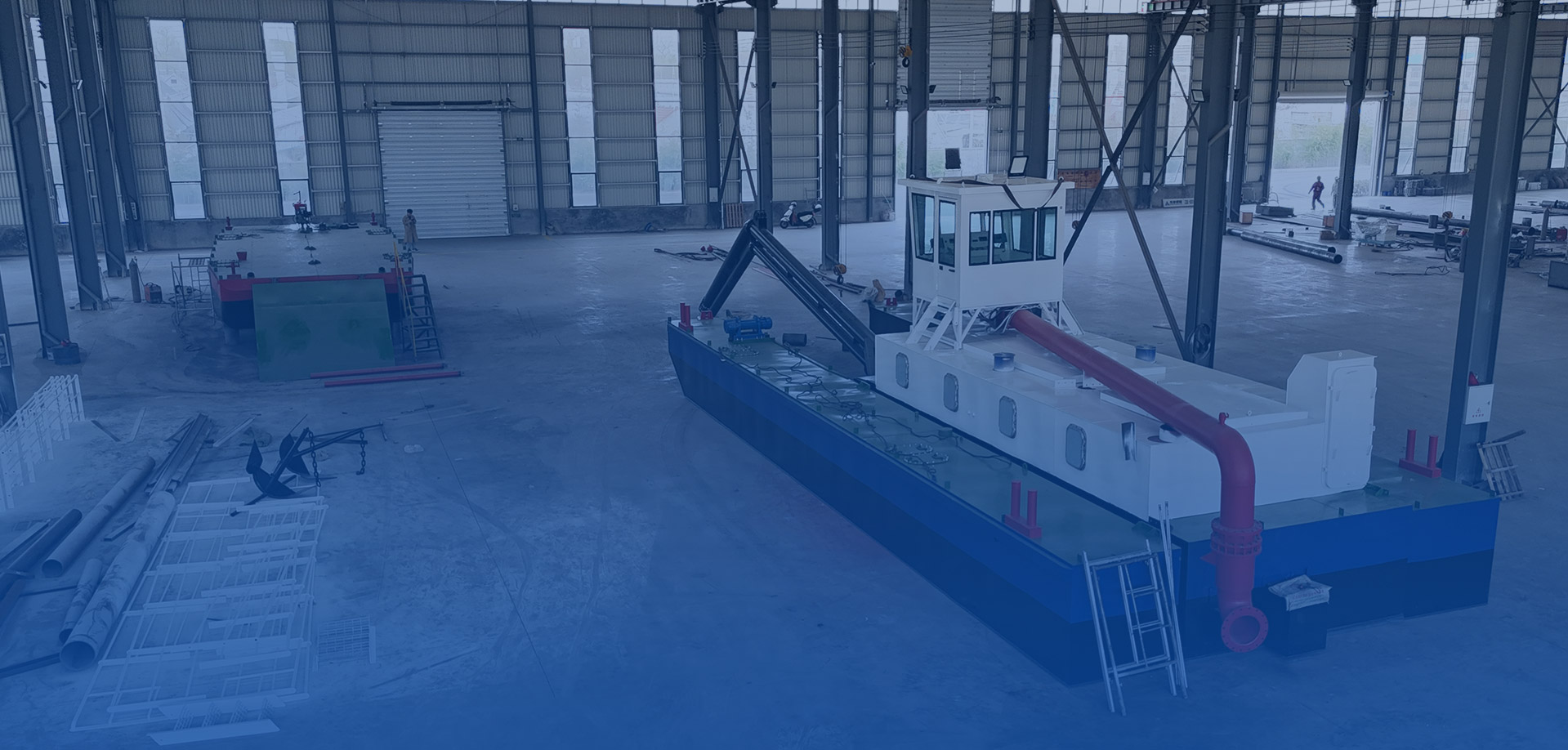 2、采用模塊化拼裝船體,泵船船體工廠分體制作,然后由陸路運輸至施工現場,在平整的地面拼裝后 下水或者將船體吊至水上拼裝。